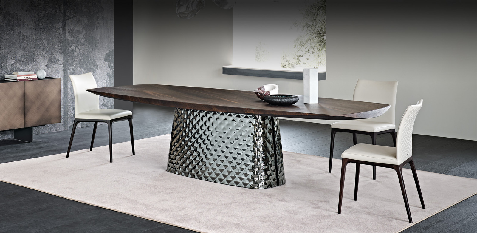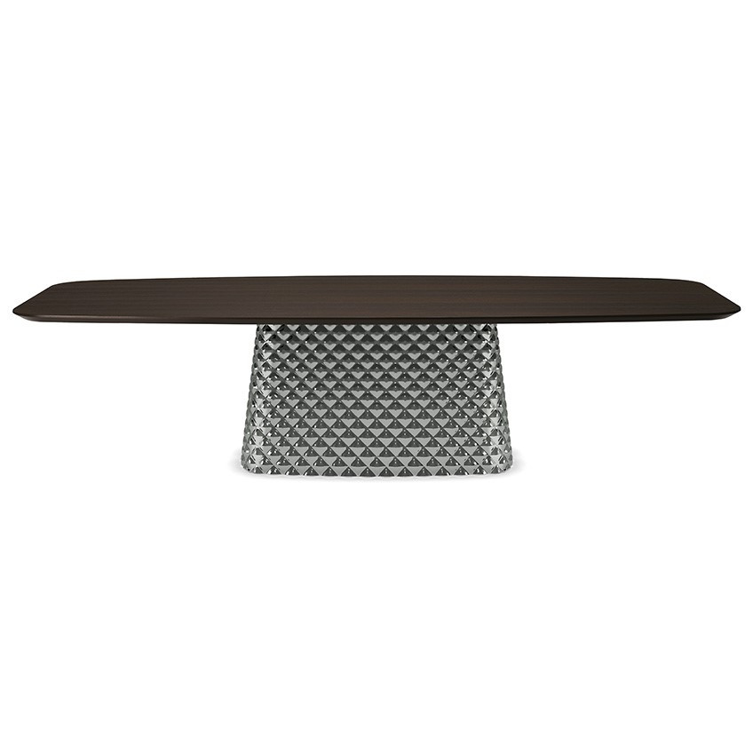 Купите обеденный стол Atrium Wood от Cattelan Italia. Уникальное основание из 3D стекла и столешница из элитного дерева. 100% Made in Italy.
