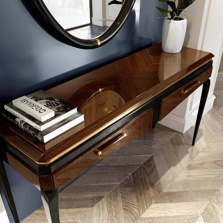 Это изысканное зеркало изготовлено из высококачественных материалов, включая зеркальное стекло, золото и древесину. Использование экологически чистых и устойчивых материалов соответствует международным стандартам, обеспечивая продукт, который является как роскошным, так и ответственным. Отделка, характеризующаяся текстурой Marmi, добавляет глубину и насыщенность общему дизайну, обеспечивая гладкий, полированный вид, который дополняет различные стили интерьера.