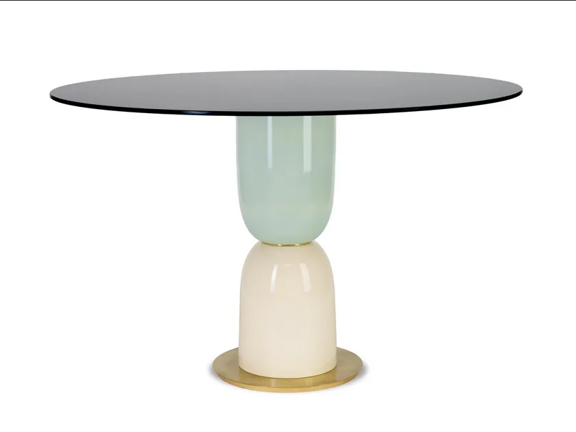 Изготовленный из высококачественной латуни, стекла и керамики, обеденный стол PINS демонстрирует исключительную прочность и sophistication. Керамические элементы покрыты глазурью в контрастных цветах, создавая яркий визуальный эффект. Задняя окрашенная стеклянная поверхность придаёт элегантный вид, в то время как латунная структура идеально полирована, обеспечивая захватывающий внешний вид. Все использованные материалы экологически чистые и устойчиво добываются, соответствуя международным стандартам сертификации, чтобы обеспечить ответственный выбор для вашего дома.
