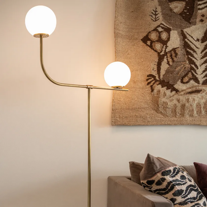Настольная лампа Pins от Marioni — это потрясающее сочетание современного дизайна и функциональности, демонстрирующее уникальный синтез простых форм и разнообразных материалов. Её элегантный силуэт включает в себя керамическую заготовку с глазурью, которая поддерживает стебель из окрашенной латуни и изящно изогнутую руку. Лампа держит два сатиновых сферических стекла, обеспечивая атмосферное освещение, идеально подходящее для любого пространства. С её выразительным присутствием эта лампа не только освещает, но и служит захватывающим произведением искусства, идеальным для современных интерьеров.