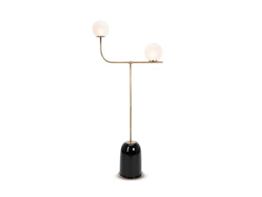 Настольная лампа Pins имеет утончённый дизайн, который подчеркивает красоту простоты. Сочетание керамической основы и стебля из окрашенной латуни создаёт динамичный контраст, в то время как изогнутая рука придаёт изящную кривую, что увеличивает её визуальную привлекательность. Внимание к деталям заметно в безупречной интеграции сферических стеклянных абажуров, которые обеспечивают мягкий, рассеянный свет, усиливающий атмосферу любого помещения.