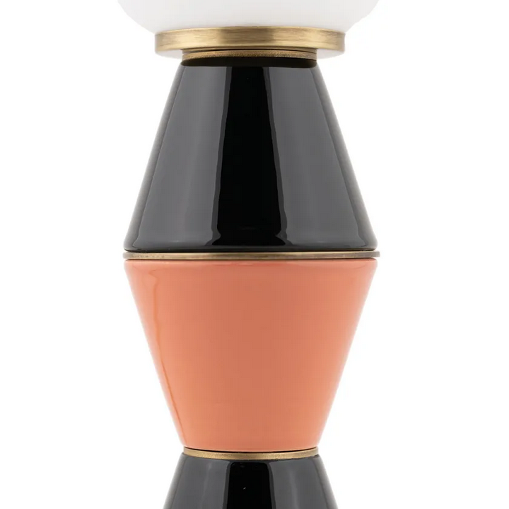 Светильник LED Ceramic Table Lamp в персиковом розовом и черном цвете от MARIONI олицетворяет sophistication и современную элегантность. Его уникальный дизайн включает латунное основание с тремя керамическими элементами в потрясающей контрастной цветовой комбинации. Этот светильник не только служит стильным решением для освещения, но и улучшает эстетическое восприятие любого современного интерьера. Его сферический матовый стеклянный диффузор обеспечивает мягкий, теплый свет, что делает его идеальным для создания уютной атмосферы в гостиных, спальнях или рабочих пространствах.