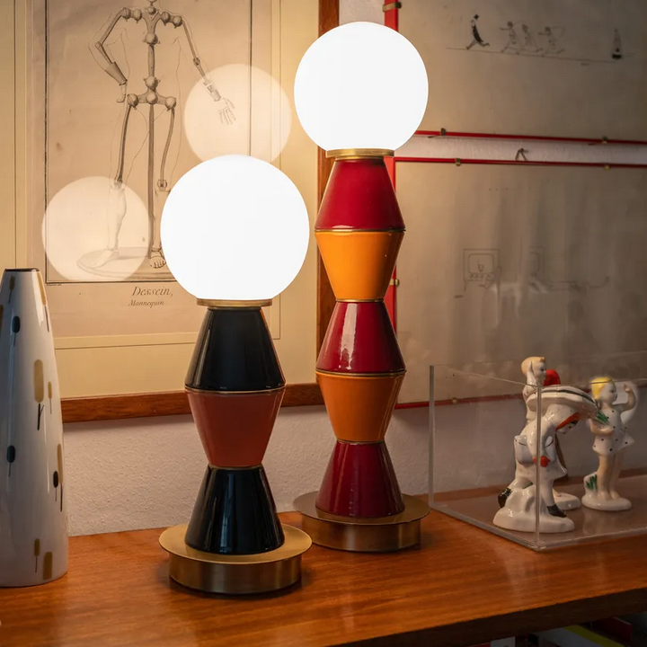 Дизайн лампы характеризуется ее отличительными конусными керамическими элементами, которые элегантно разделены латунными вставками. Сферический матовый стеклянный диффузор добавляет уровень утонченности, усиливая эстетическую привлекательность лампы. Каждая деталь, от плавных изгибов керамики до гладкой отделки латуни, тщательно изготовлена для обеспечения визуально захватывающего опыта. Это внимание к деталям гарантирует, что лампа будет выделяться в любой обстановке.