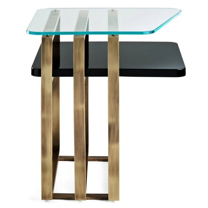 Квадратный деревянный кофейный столик демонстрирует безупречное сочетание формы и функции, с его гладкой поверхностью и изысканными деталями. Нежная латунная конструкция добавляет элемент тепла и элегантности, в то время как стеклянная верхняя часть обеспечивает прозрачность и легкость. Каждая деталь, от точности резов до гладкости отделок, была тщательно продумана, обеспечивая потрясающий визуальный эффект.