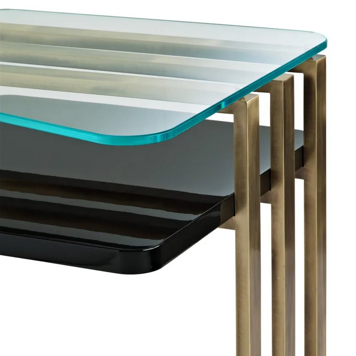 Этот кофейный столик включает в себя передовые принципы дизайна, которые ставят во главу угла как стиль, так и функциональность. Использование высококачественных материалов обеспечивает долговечность, в то время как тщательная отделка отражает современные методы производства. Сочетание дерева, стекла и латуни не только создает визуально привлекательный предмет, но и соответствует последним тенденциям устойчивого дизайна.