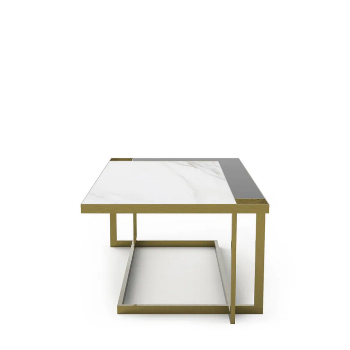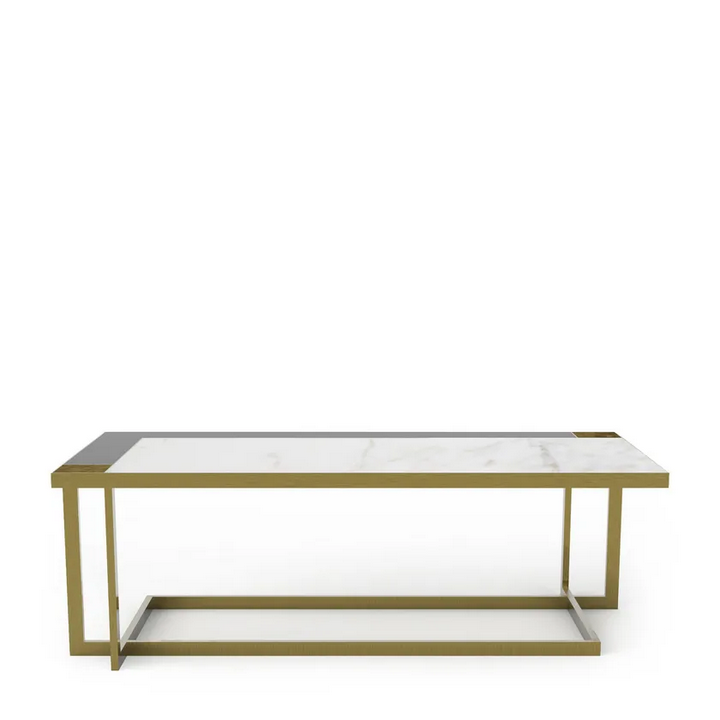 Этот кофейный столик воплощает современную эстетическую концепцию, объединяя чистые линии и функциональную красоту. Минималистичный подход дополняется роскошными материалами, создавая визуально впечатляющий предмет. Его дизайн включает элементы, которые являются одновременно традиционными и современными, что придает ему вечный вид, подчеркивающий любое жилое пространство.