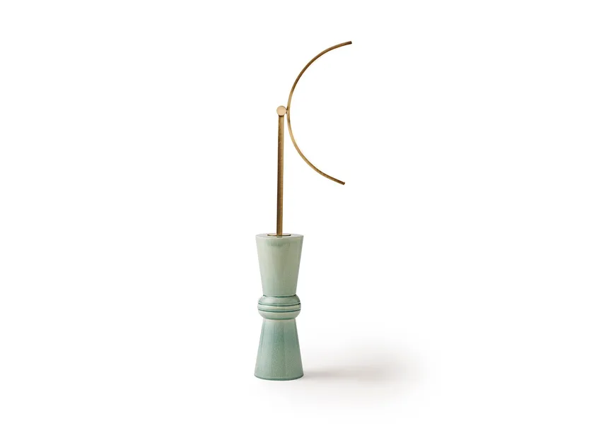 Дизайн лампы Malibù B характеризуется её элегантным силуэтом и продуманными деталями. Двойная конусная форма керамической основы дополняется гладкой латунной конструкцией, создавая сбалансированный и визуально привлекательный вид. Внимание к деталям в craftsmanship, включая шёлковый шнур, добавляет утончённость, которая повышает её эстетическую ценность.