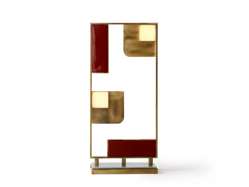 Эта лампа является свидетельством тонкого дизайна, с вниманием к деталям, заметным в ее форме и отделке. Элегантная форма и игра матовой латуни с глазурованными керамическими плитками создают утонченный вид. Декоративные элементы, такие как сложные узоры плиток, добавляют глубины и характера, превращая ее не только в источник света, но и в предмет для обсуждения.