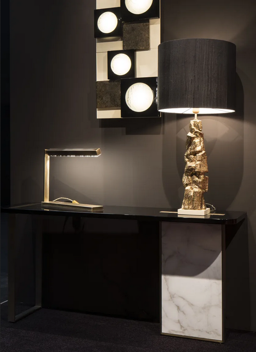 Регулируемая настольная лампа олицетворяет современный стиль, который интегрирует традиционные и современные элементы дизайна. Её изящный силуэт и латунные детали создают уникальное визуальное воздействие, прекрасно вписываясь в различные интерьерные темы. Сочетание современных эстетических решений с классическими материалами обеспечивает, что эта лампа выделяется как акцентный элемент в вашем доме.