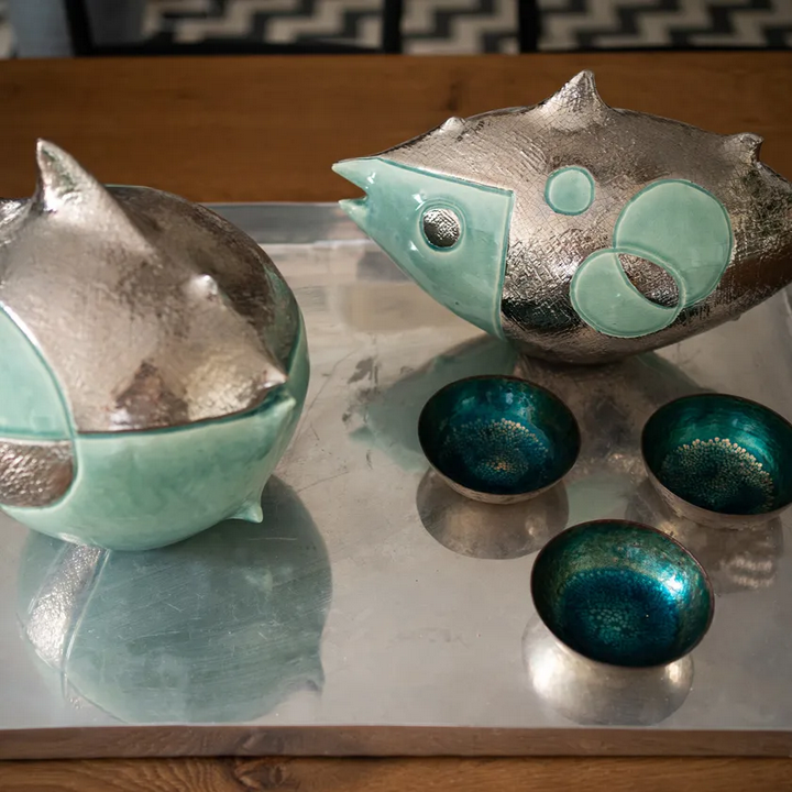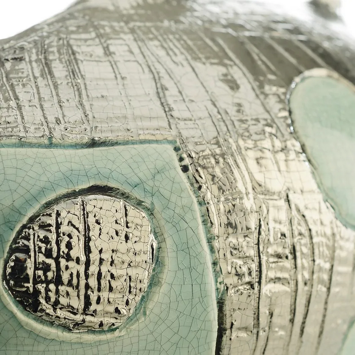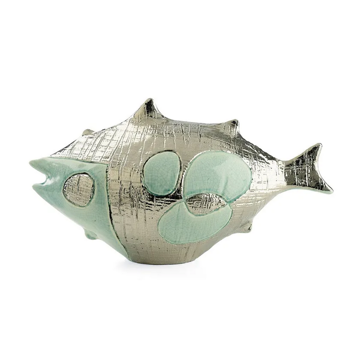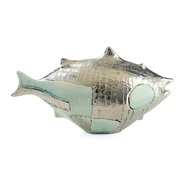 Скульптура Long Fish Pop от MARIONI включает инновационные техники глазурования керамики, которые улучшают её визуальную привлекательность и обеспечивают защитный слой от износа. Использование экологически устойчивых материалов отражает приверженность ответственной художественной практике и современным стандартам производства.