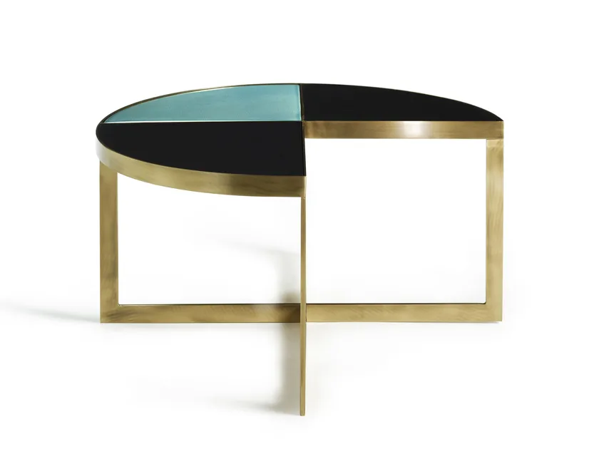 Круглый кофейный столик спроектирован с акцентом на стабильность и прочность. Бронзовая рама сконструирована так, чтобы надёжно поддерживать вогнутую поверхность, что гарантирует, что он может выдерживать вес без ущерба для своей целостности. Этот предмет не имеет встроенных функций, таких как ящики или отсеки, сосредоточив внимание на простоте и элегантности в своём дизайне.
