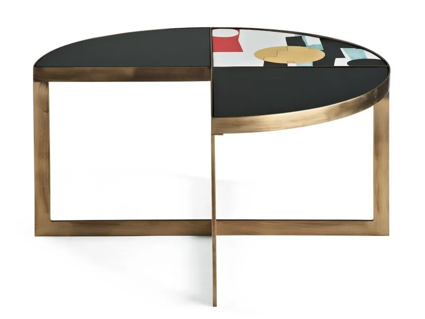 Этот кофейный столик фокусируется на традиционном мастерстве без опоры на высокие технологии. Тем не менее, его конструкция использует современные техники для обеспечения долговечности и эстетической привлекательности, такие как точная сварка для бронзовой рамы и тщательная обработка керамической поверхности.