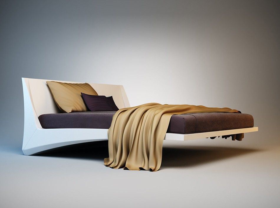 Мягкая кровать с обивкой из ткани, синтетического нубука, микронубука, экокожи или кожи по карточке образцов. Ножки из хромированной стали. Сеть включена.
