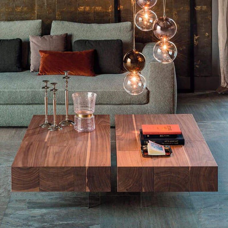 Журнальный столик из ореха Canaletto с ножками из прозрачного метакрилата.