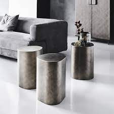 Журнальный столик со структурой из матовой бронзы или матовой серой стали.
