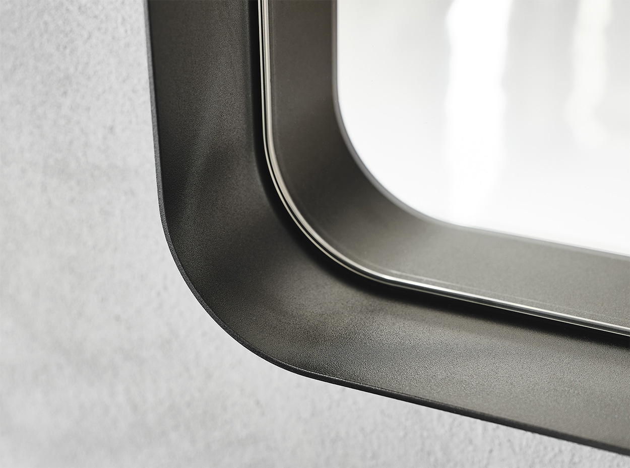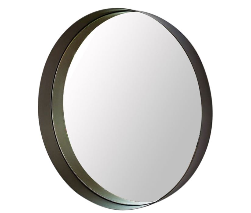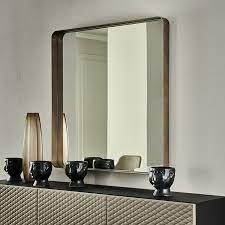 Настенное зеркало. Рама из титана или черного, матового бронзового или матового серого цвета с тиснением из окрашенной стали.