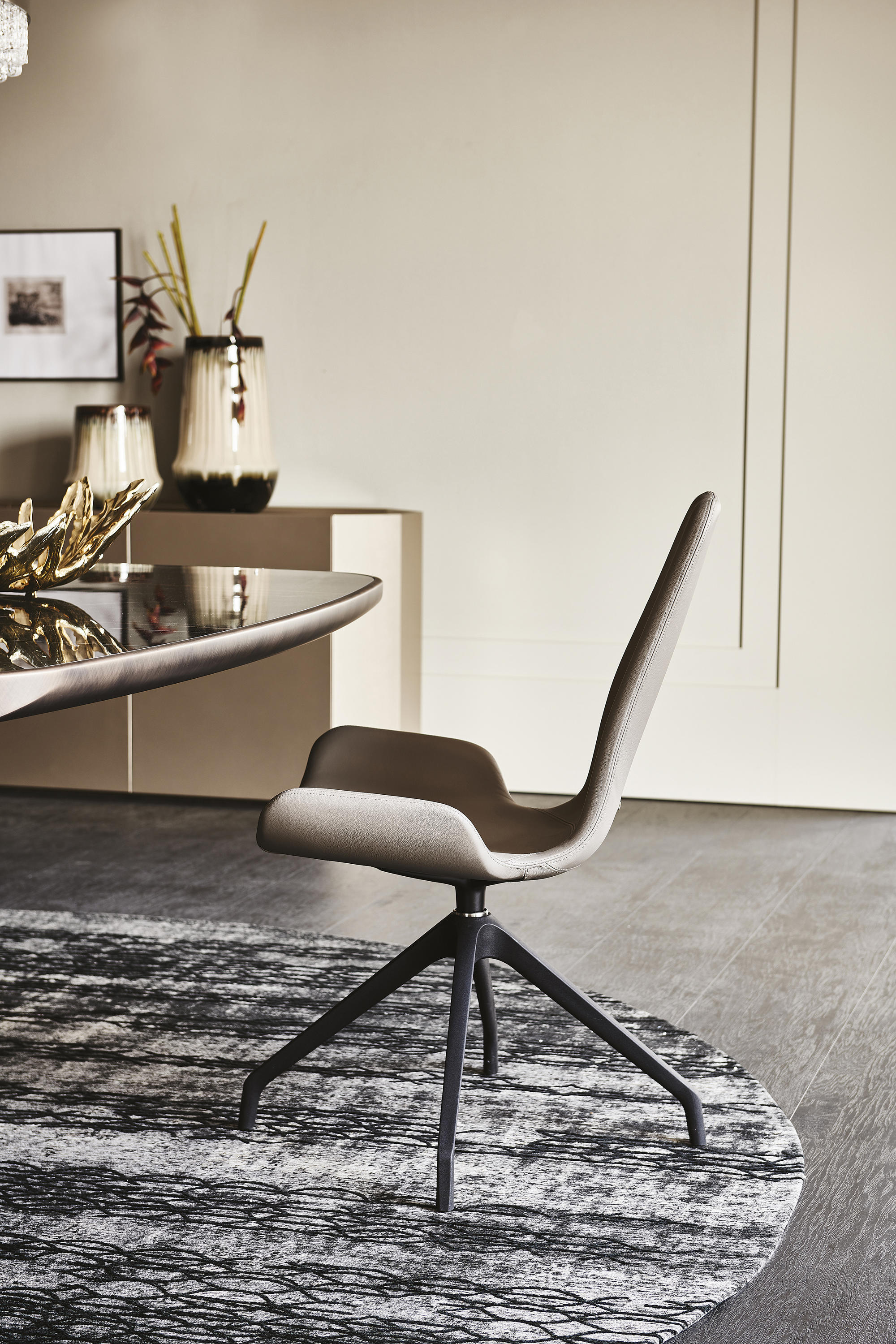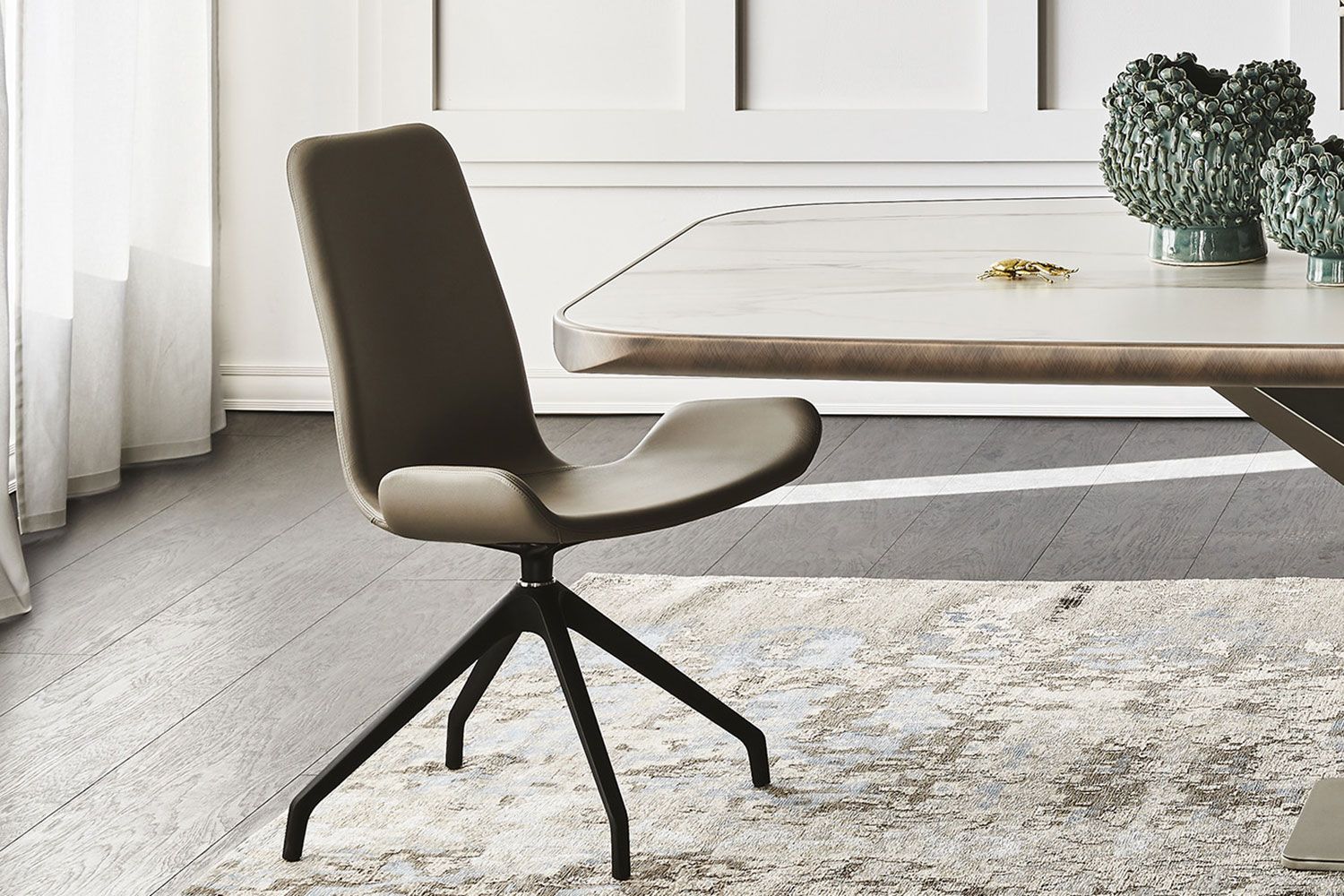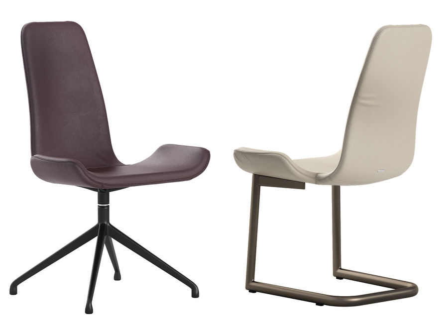 Стул с титановым, графитовым, белым или черным стальным каркасом с тиснением. Обивка тканью, синтетическим нубуком, микронубуком, экокожей или кожей.