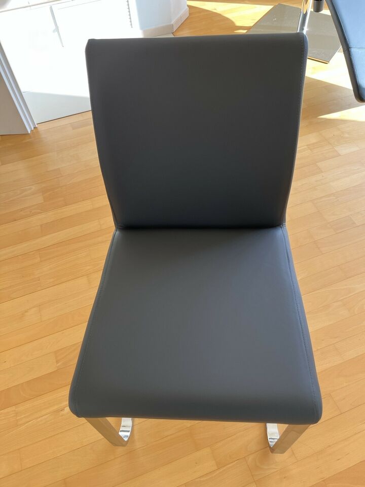 Консольный стул с каркасом из хромированной стали. Обивка тканью, синтетическим нубуком, микронубуком, экокожей или кожей.