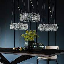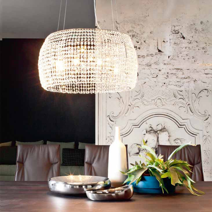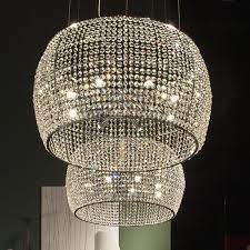 Потолочный светильник с каркасом из хромированной стали и абажуром из хрустальных подвесок. Лампа в комплекте.
