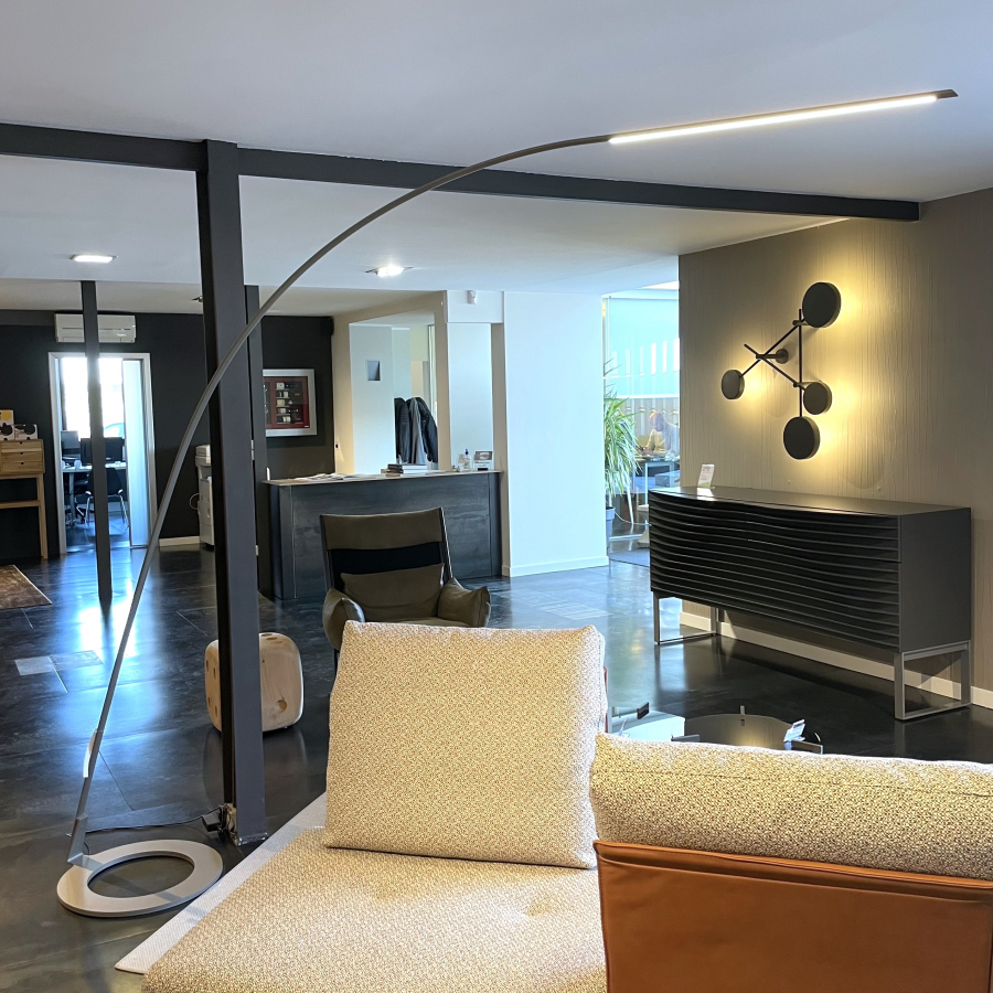 Торшер со структурой из титана, графита или стали с тиснением, окрашенной в черный цвет. Светодиодное освещение, светодиод в комплекте.