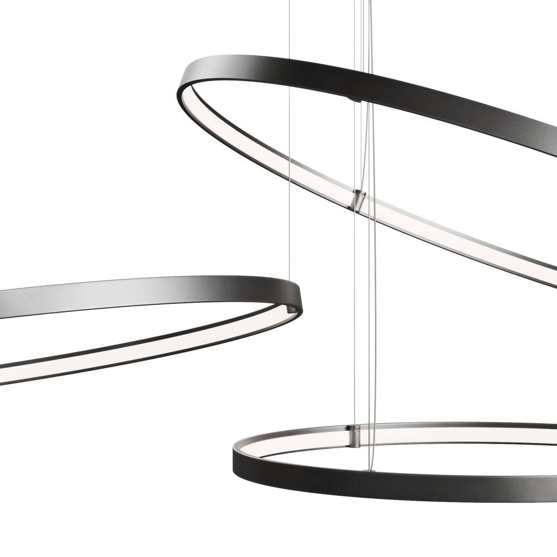 Потолочный светильник со структурой из окрашенной стали с тиснением под титан. Потолочное крепление из титановой и черной окрашенной стали с тиснением. Светодиодная подсветка. Дополнительный пульт дистанционного управления.