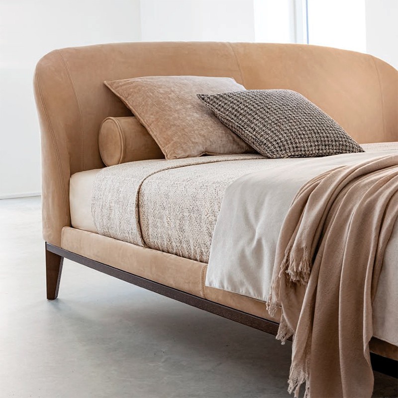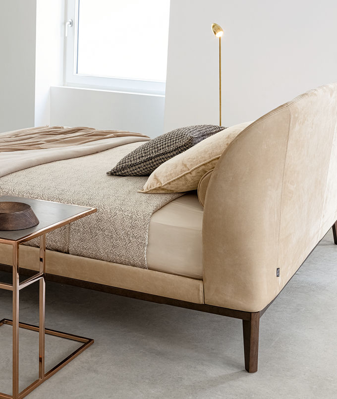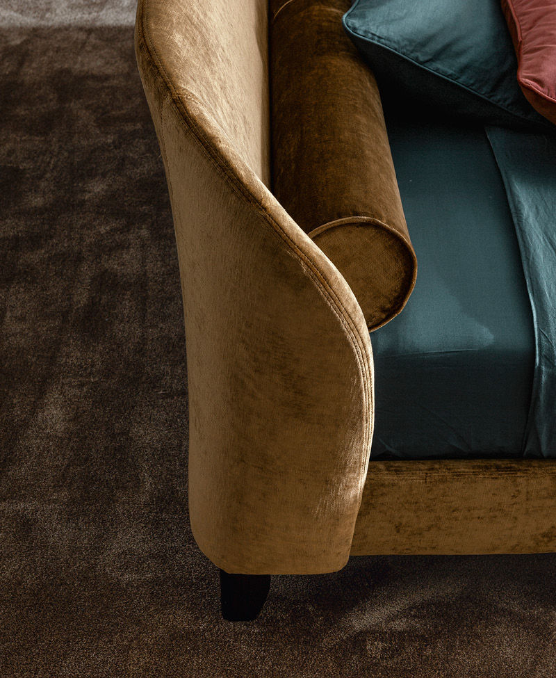 Двухспальная кровать Twils Carnaby. Под заказ доступны разные размеры кровати, отделки и ножки. Царги и изножье установлены на деревянное обрамление из окрашенного ясеня, которое идет по всему периметру кровати. Кровать изготовлена в классическом стиле 70-х годов с фигурным изголовьем. В этой кровати нашли выражение ручная работа и искусное мастерство компании Twils. Она может быть полностью обита кожей или тканью, включая фигурные ножки.
