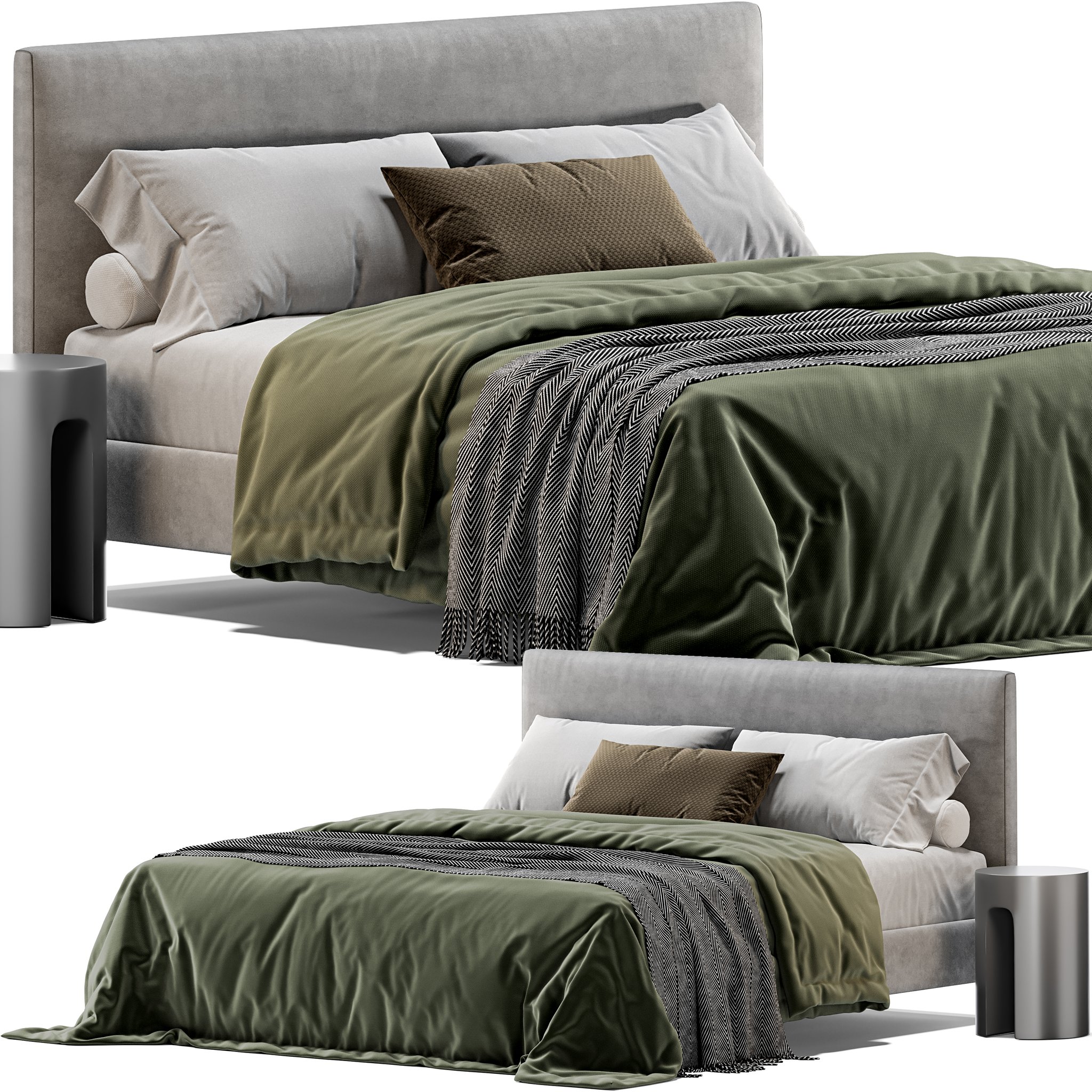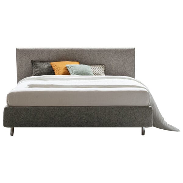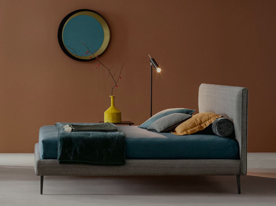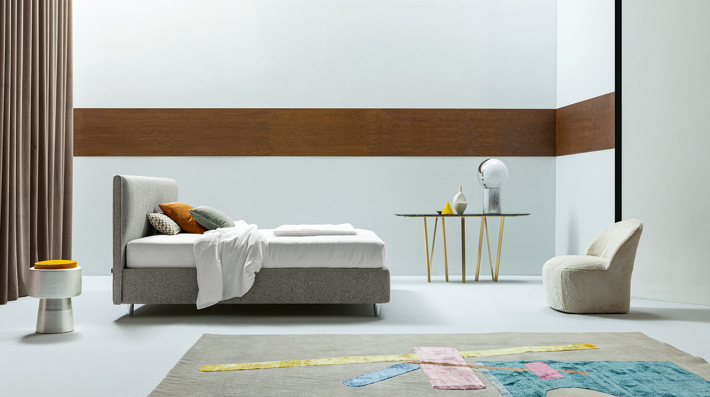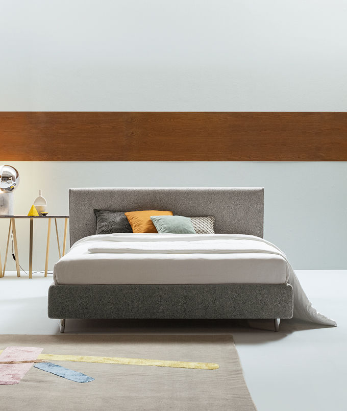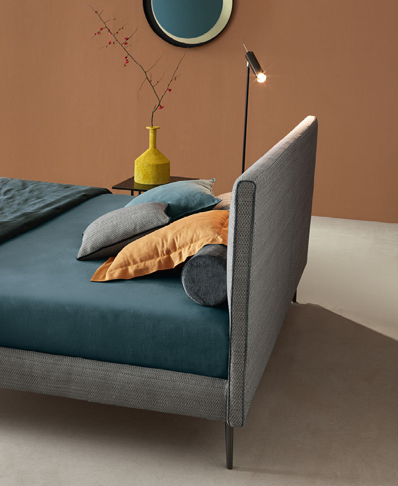 Односпальная мягкая кровать Dread от R&D Twils. Каркас модели выполняется в нескольких модификациях: определяющим штрихом становится высота и фактура ножек. Прямое изголовье, наряду с изножьем и царгами, декорировано фактурным текстилем, по контуру изголовья добавлена элегантная окантовка ручной работы.