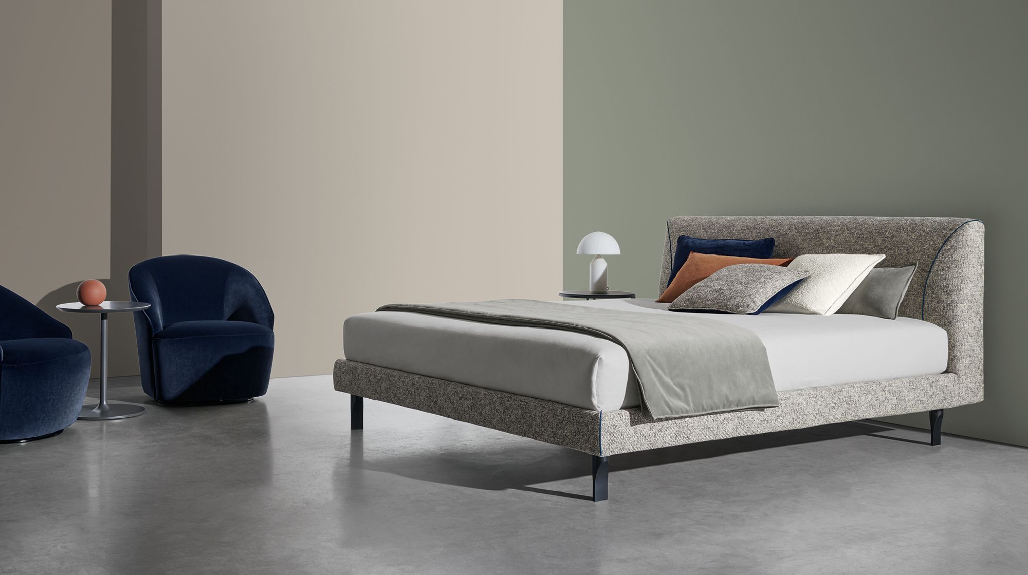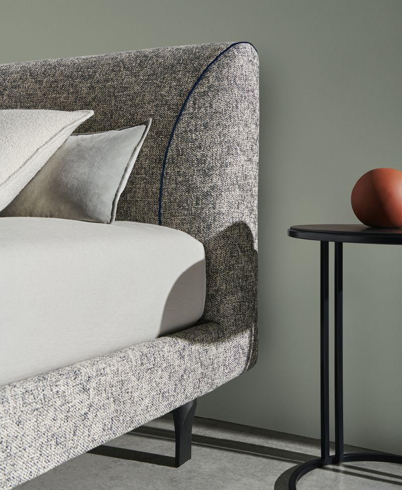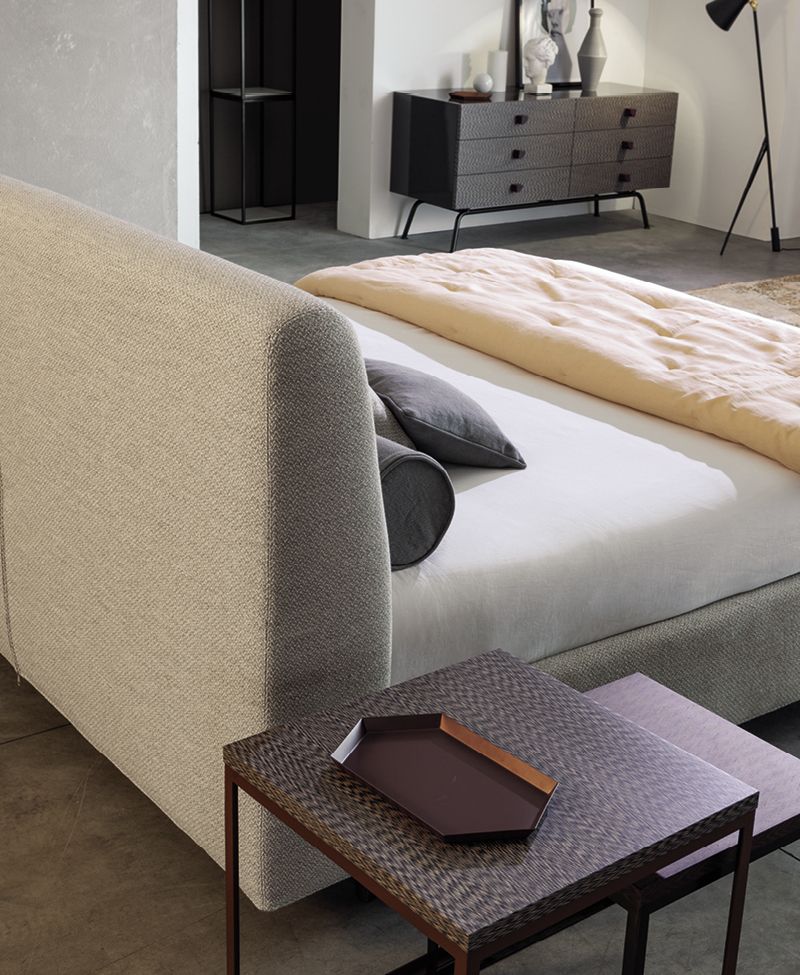 Двуспальная кровать Twils. Мягкий изгиб изголовья èS приглашает к комфорту; даже изменяя высоту каркаса кровати, отпечаток всегда современный и стильный. èS — это комплексная система, простирающаяся от спальной зоны до гостиной и создающая всеобъемлющий и соблазнительный стиль. Образцы представлены в наших салонах.