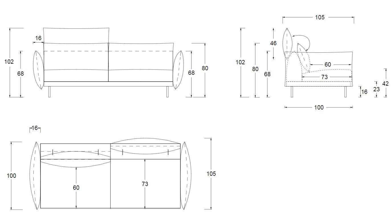 | Размеры | Длина (см): 198; 218; 238; 281 Высота (см): 102 Глубина (см): 100; 105 |