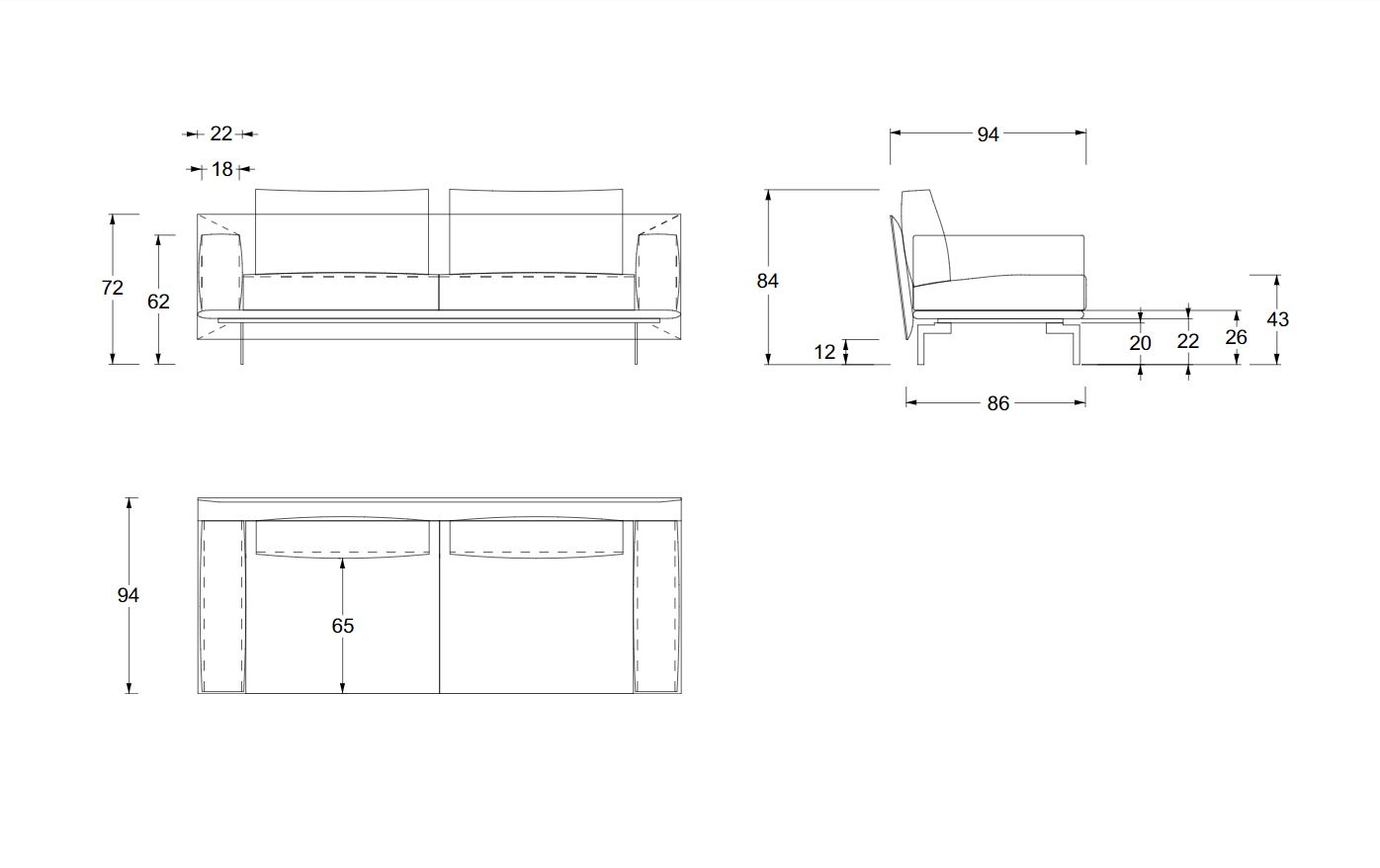 | Размеры | Длина (см): 192; 212; 232; 252 Высота (см): 84 Глубина (см): 94 |