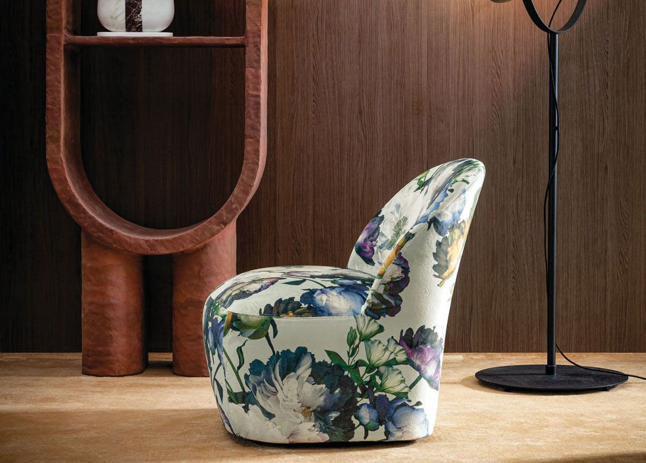 Twils – кресло Carnaby. Отличающееся мягкими формами благодаря почти полному отсутствию углов, кресло Carnaby имеет компактные пропорции. Он легко меняет характер в зависимости от выбранного покрытия, классический со сдержанными цветами и молодой с яркими цветами.