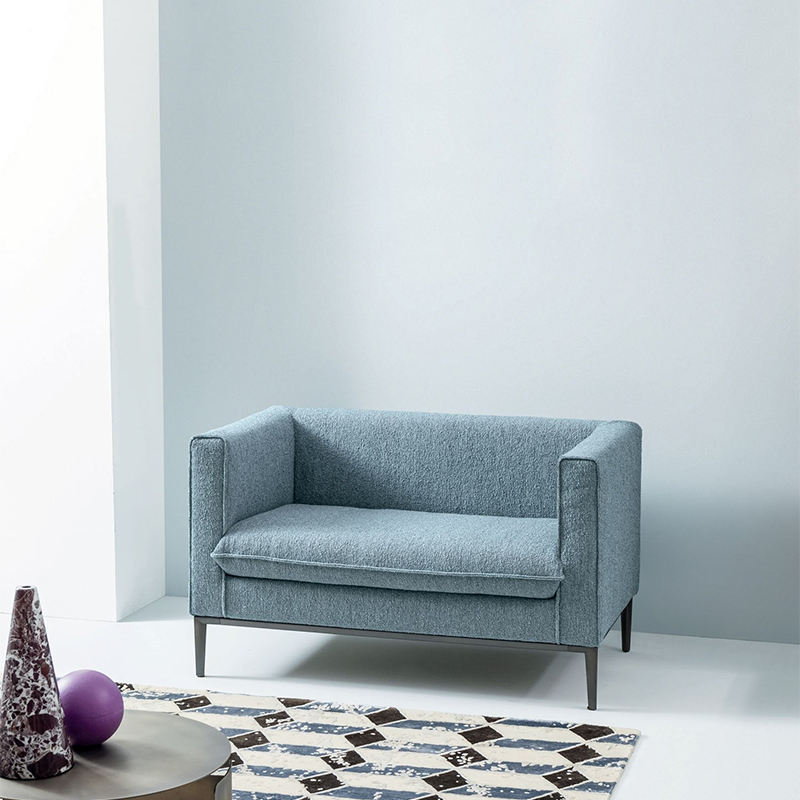 Диван с дизайном, вдохновленным современным минималистским стилем. Прямые и решительные линии четко определяют форму кресла, которое дополняется низкой спинкой, которая, повторяя периметр сиденья, также образует подлокотники. Чисто показательное фото. Цена относится к версии L130 с тканевой обивкой категории B.
