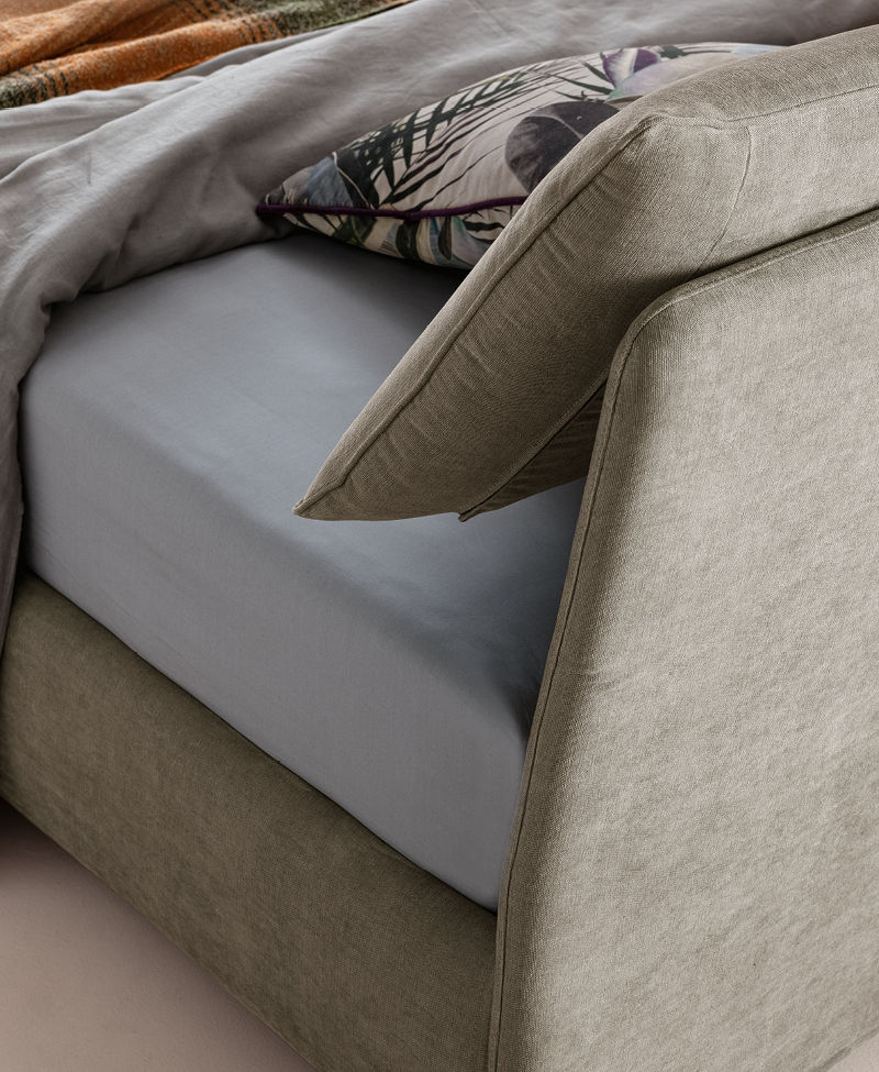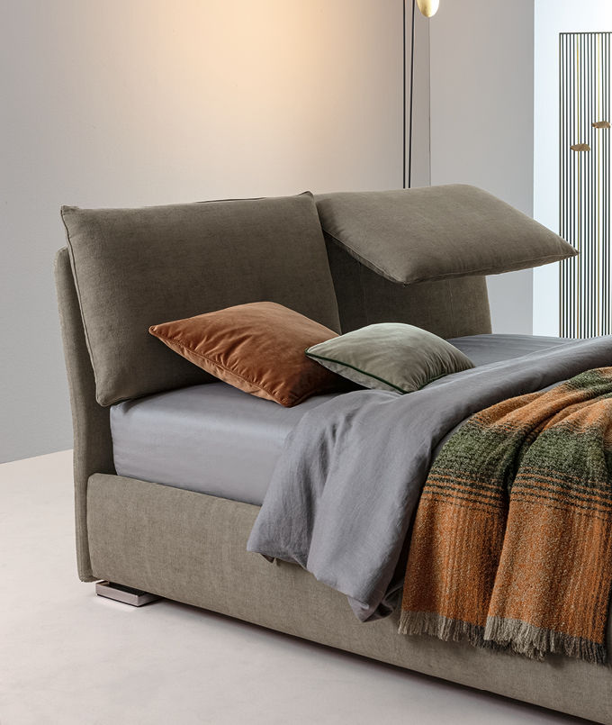 Высокая кровать Soul представлена в линейке мебели R&D Twils. Массивный каркас дополнен мягкой фактурной обивкой из плотного текстиля. Округлые контуры модели, большие подушки в изголовье, компактные ножки – каждая деталь подчеркивает стопроцентное стремление к комфорту и тотальному расслаблению. Подушки оснащены скрытым механизмом для регулировки угла наклона, поэтому в кровати можно комфортно расположиться для отдыха с любимой книгой. Завершающий штрих – яркая контрастная окантовка элементов.