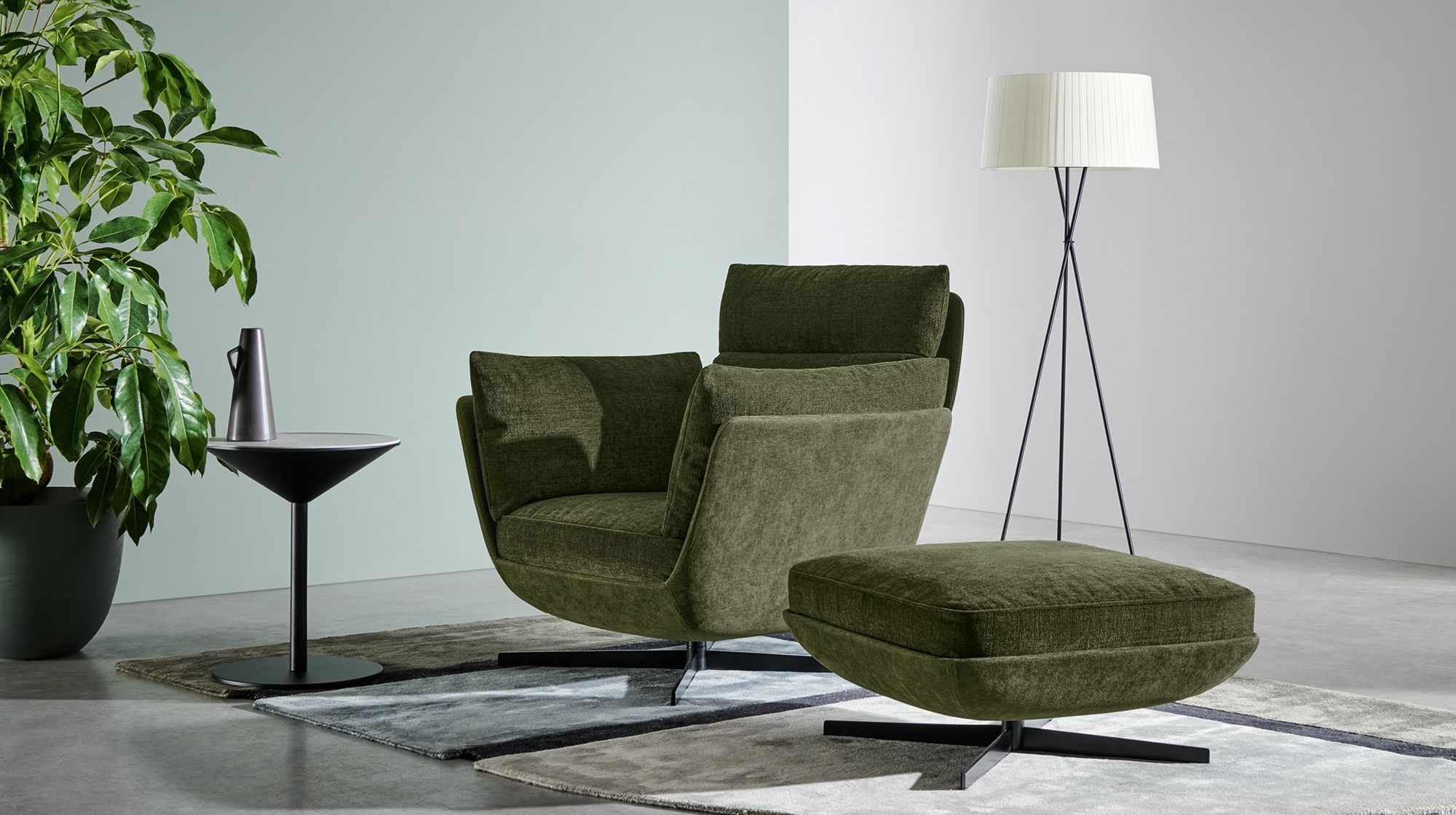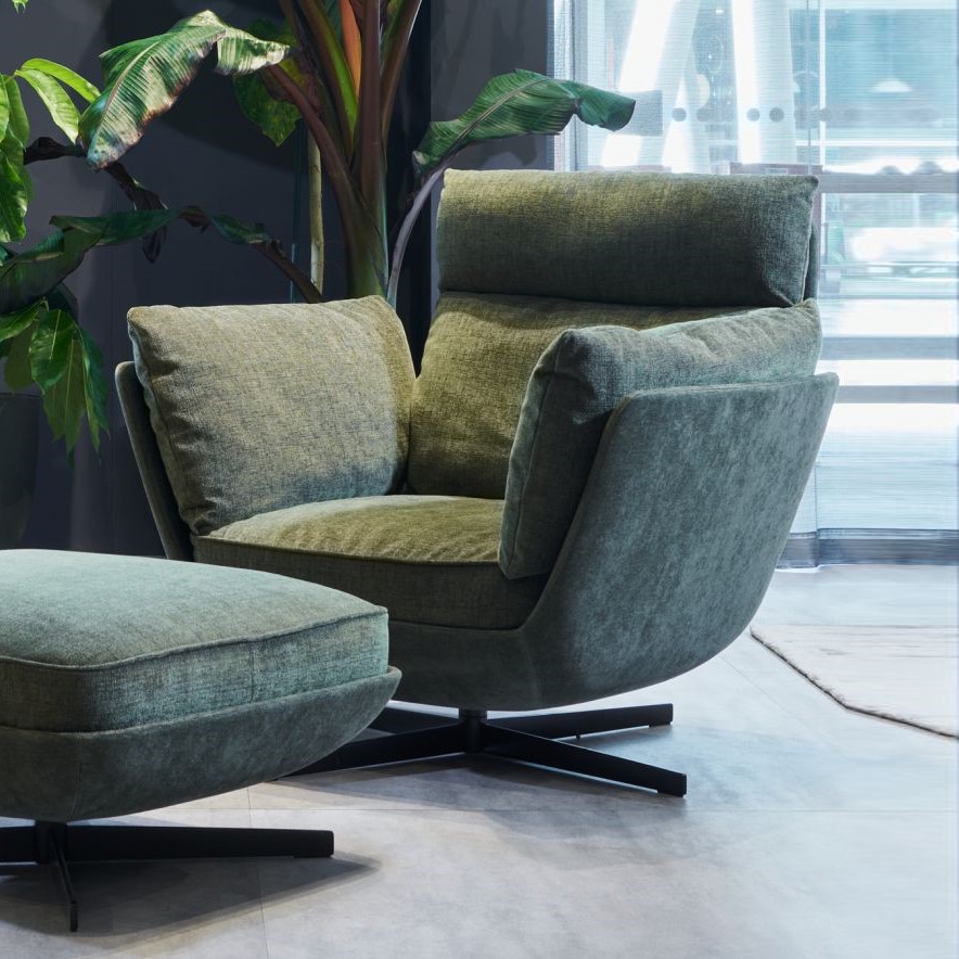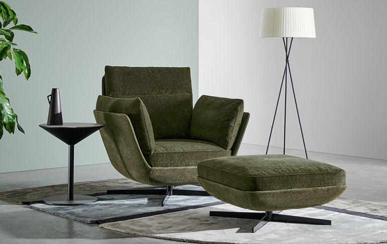 Twils Biggie. Кресло с щснованием из матового черного металла, отделка из ткани. Biggie — это кресло с подставкой для ног, которое можно легко прикрепить и отсоединить от других модулей, чтобы создать диван, который идеально подходит для самых разных нужд.
